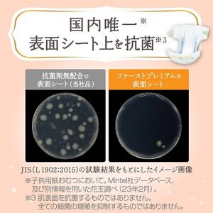 The newly enhanced Merries First Premium Diaper Pants are meticulously designed to provide "Five-Star Gentleness" for your baby's delicate skin. Featuring a unique antibacterial surface sheet—the only one of its kind in the Japanese domestic market—these diapers help maintain a clean environment inside the diaper to support healthy skin appearance and prevent irritation.