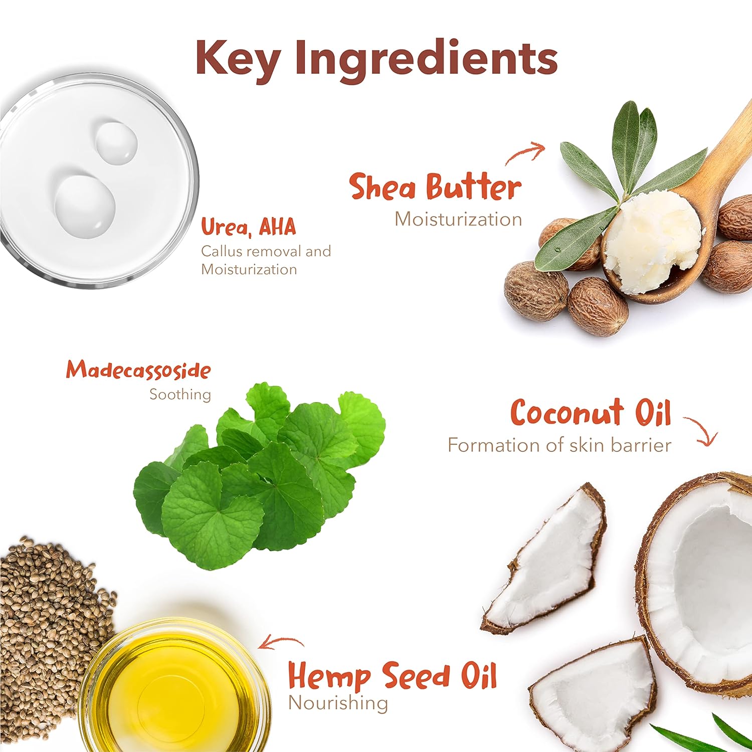 vegan formula & not tested on animals: it's perfect for your sensitive skin and it's made for all skin types. madecassoside and shea butter naturally peel away heel calluses. coconut oil and hemp seed oil moisturize and soften dry skin to be like a baby’s foot