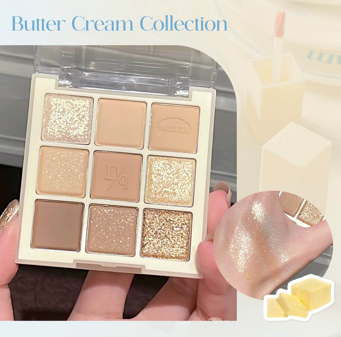 The DASIQUE Eye Shadow Palette in #17 Butter Cream features a collection of warm, neutral shades inspired by creamy butter tones that create soft, everyday eye looks. This palette includes matte, shimmer, and glitter finishes that can be layered for both subtle daytime looks and more defined evening makeup. The finely-milled powder formulas blend effortlessly without fallout, offering buildable color that lasts throughout the day. The harmonious color selection includes peach, brown, and beige tones that complement various eye colors and skin tones, making it a versatile addition to any makeup collection for creating natural, romantic eye looks.